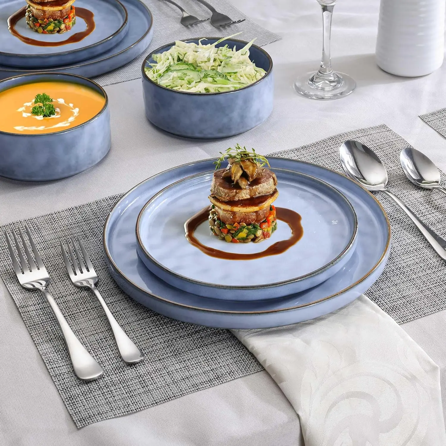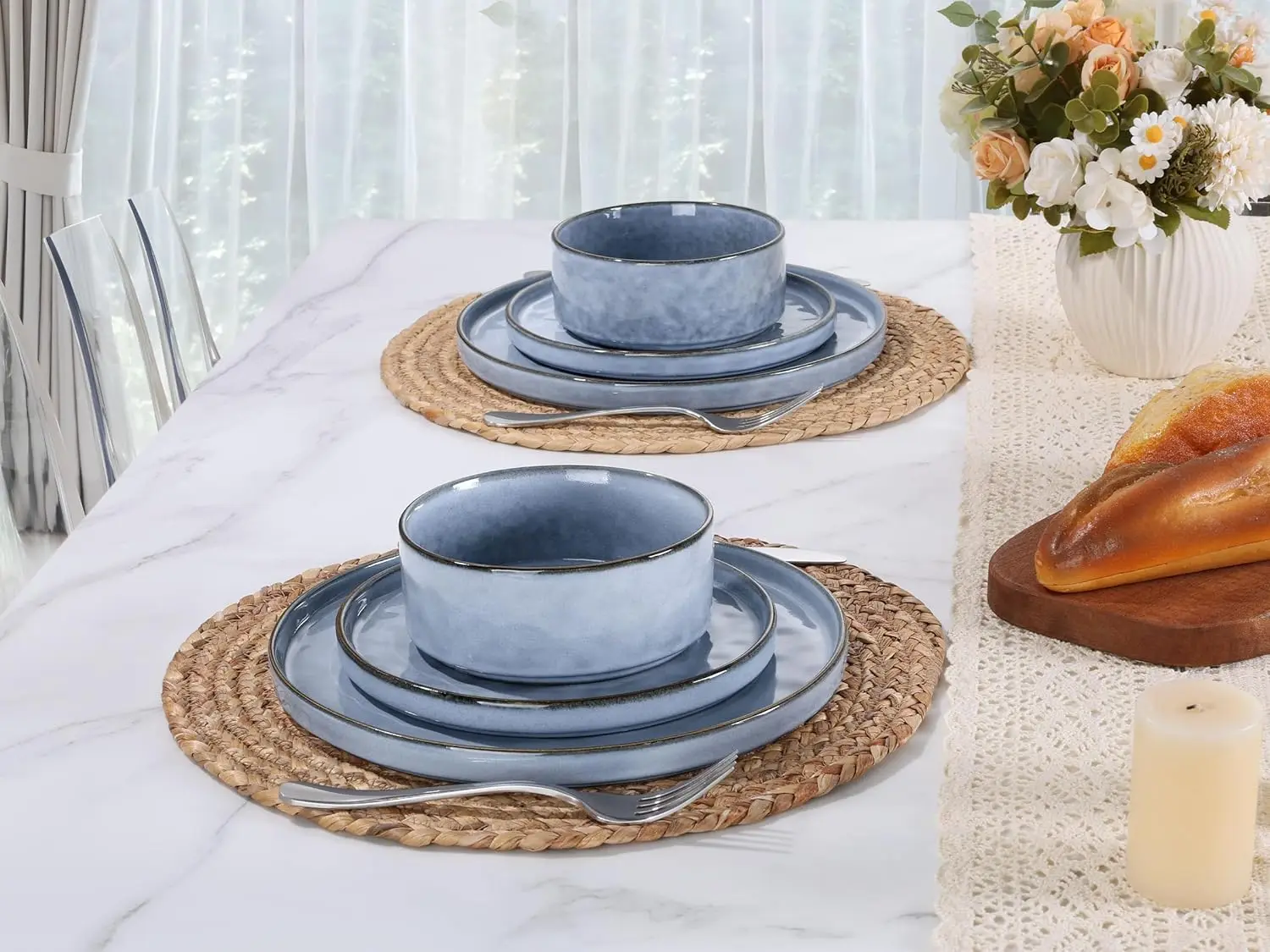 A 24-piece stoneware dinnerware set for 8, including plates and bowls suitable for salads, pasta, and desserts. Durable with a modern finish, and safe for use in both the microwave and dishwasher.