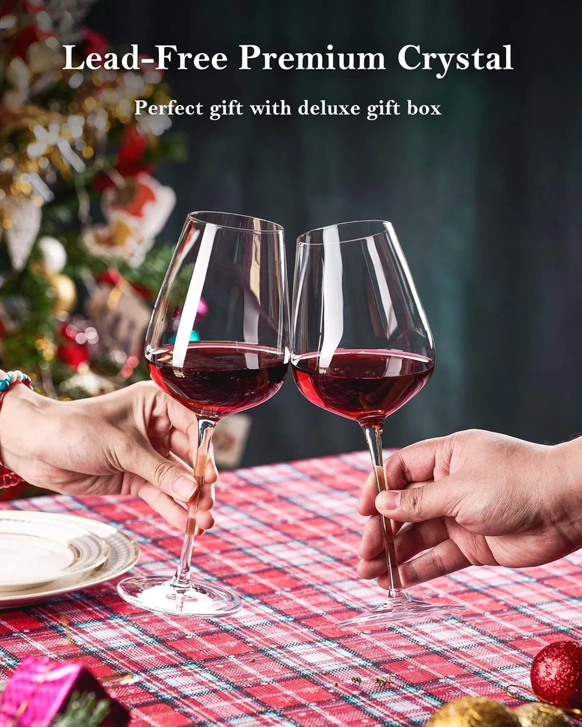 This 6-piece set of 12oz lead-free crystal wine glasses offers a perfect blend of elegance and durability for any occasion. Designed with long, slender stems and a crystal-clear finish, each glass enhances the aroma and flavor of both red and white wines. Their balanced, lightweight feel makes them ideal for home use, weddings, parties, holiday gatherings, and special celebrations. With their refined shape and durable construction, these glasses bring timeless sophistication to any table setting or gift collection.