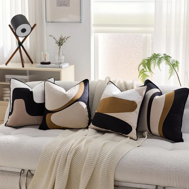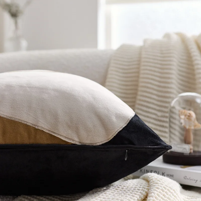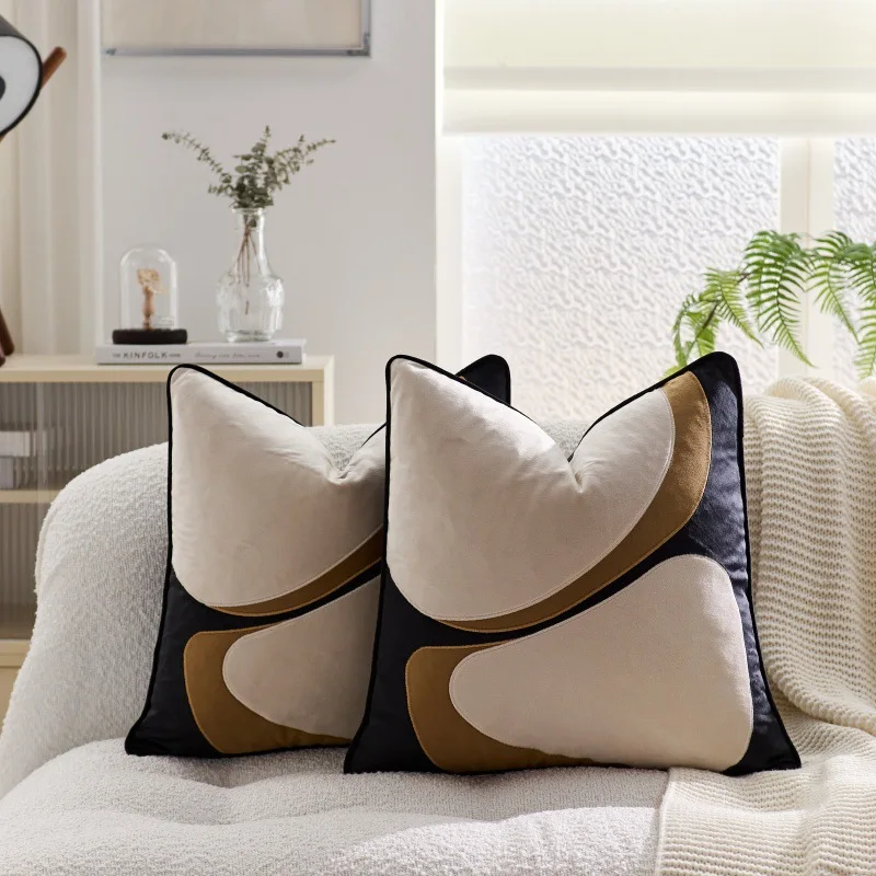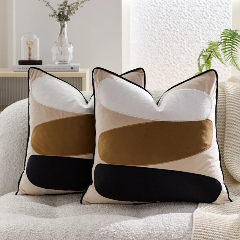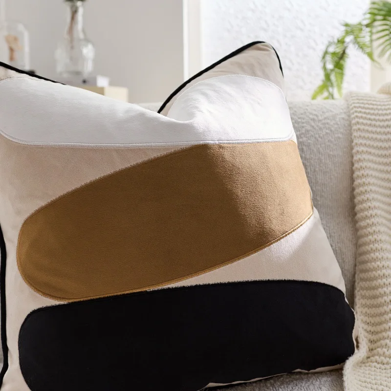 Add a touch of modern elegance to your space with this Abstract Block Patchwork Cushion Cover. Featuring a unique blend of black, brown, and beige tones, it creates a sophisticated accent for any room. The embroidered patchwork design gives the pillow cover a stylish and textured look. Crafted from high-quality fabric, it is both durable and comfortable. Measuring 45x45cm, it fits most standard square pillows perfectly. Ideal for sofas, chairs, beds, or office seating, it enhances any interior décor. The hidden zipper makes it easy to insert or remove the cushion. This pillow cover is simple to clean and designed for everyday use. Its versatile design complements modern, minimalist, and contemporary interiors. Upgrade your living space with this chic and decorative cushion cove