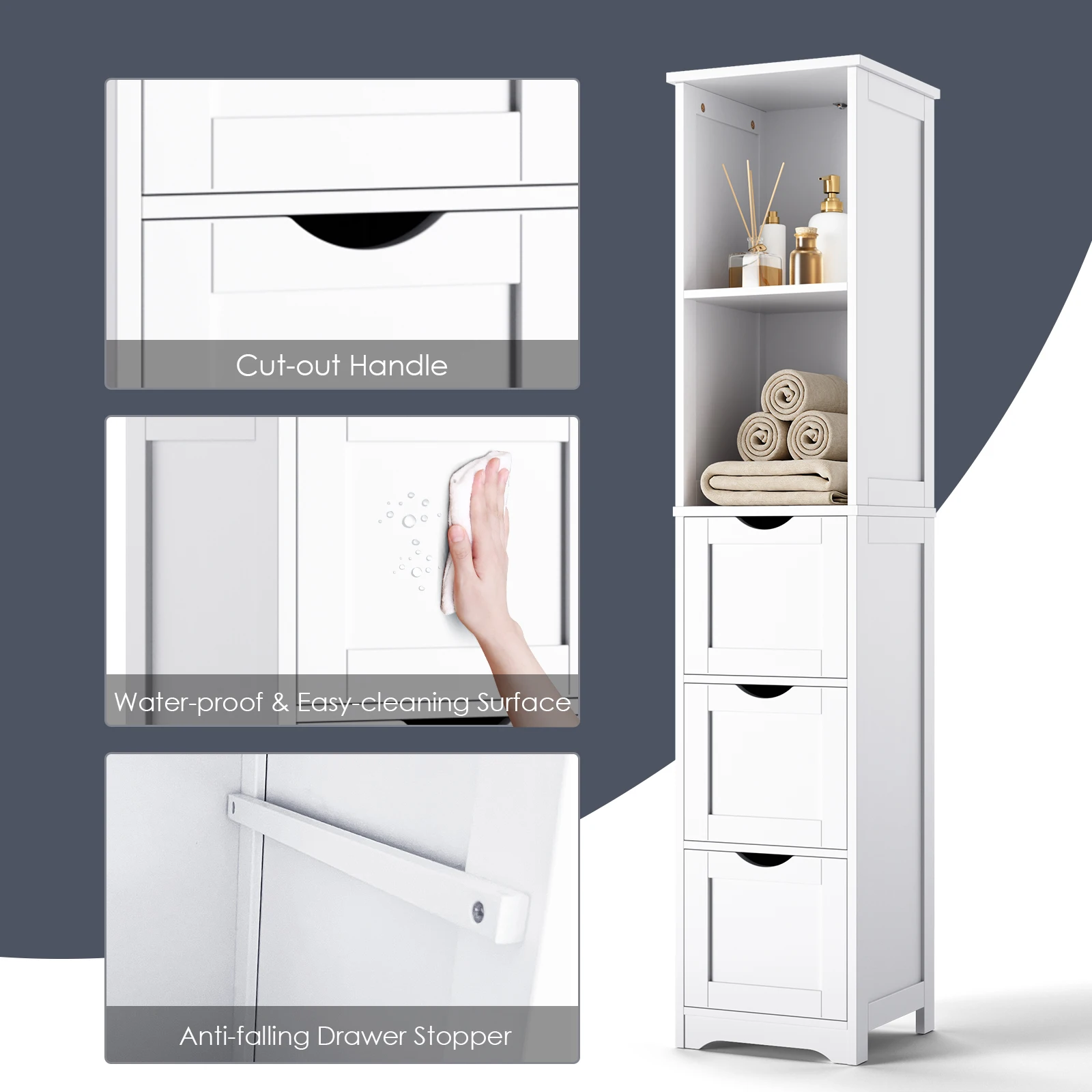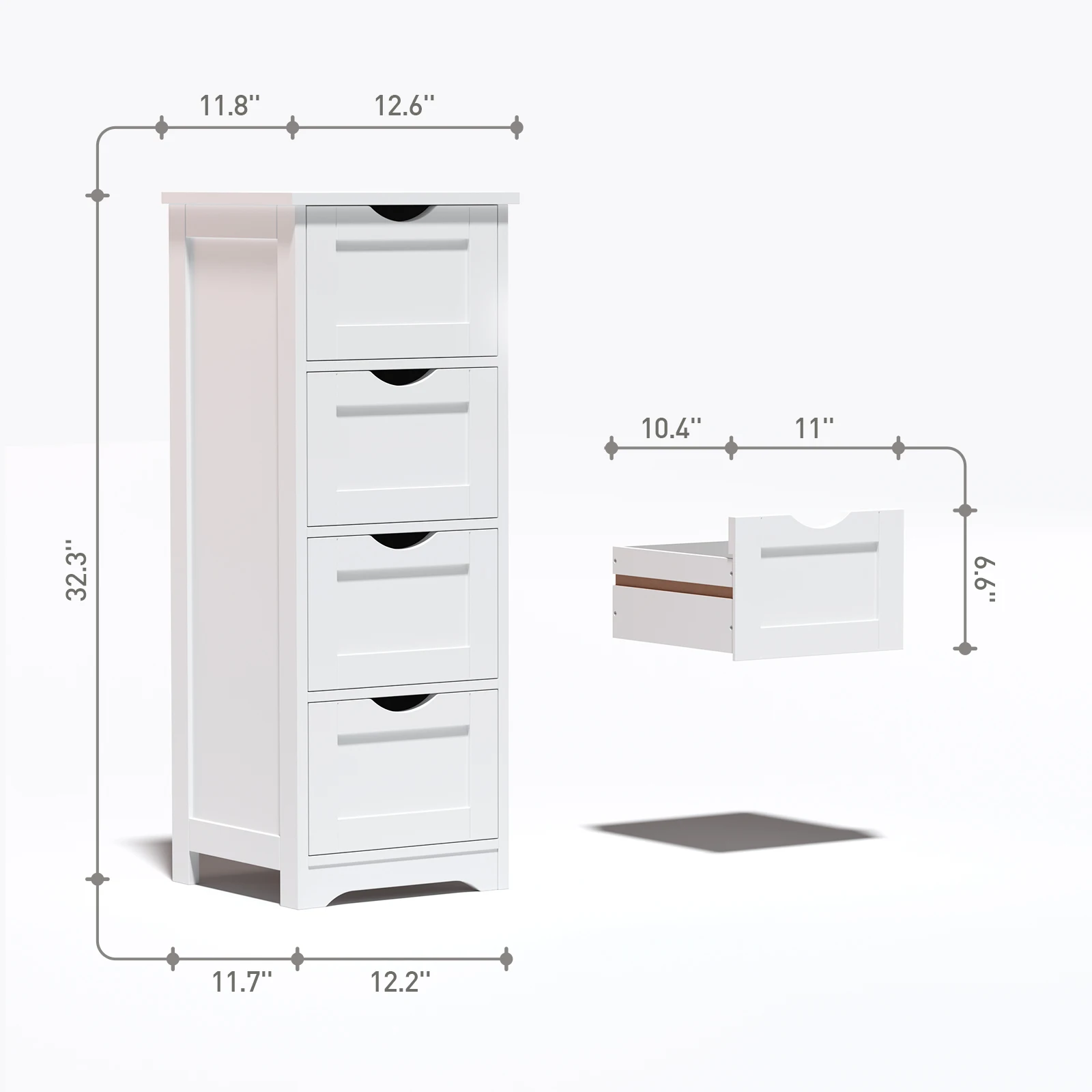 Elegant and practical free-standing bathroom storage cabinet featuring multiple drawers and a convenient door for versatile organization. Ideal for storing toiletries, towels, and essentials, this floor cabinet offers a clean, modern look that complements any bathroom décor while maximizing space.