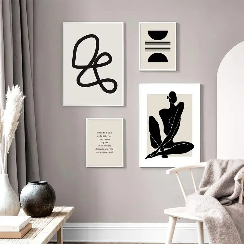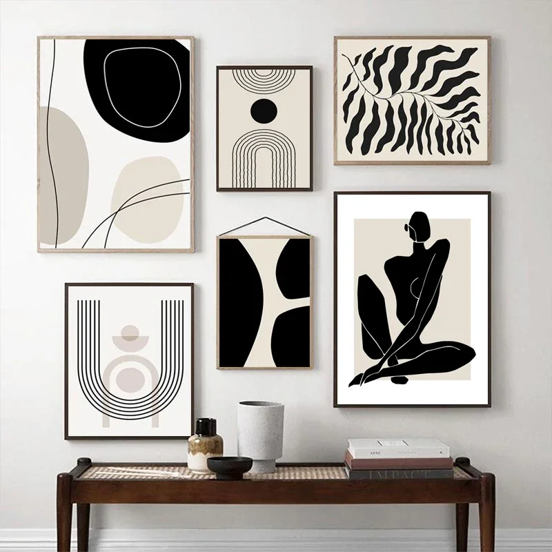 boho wall art, geometric canvas print, abstract bohemian décor, beige black wall art, Nordic line posters, modern living room art, minimalist canvas painting, boho style home décor, abstract wall decoration, contemporary art print, Scandinavian wall art, neutral tone artwork, living room canvas décor, bohemian wall pictures, stylish home accents