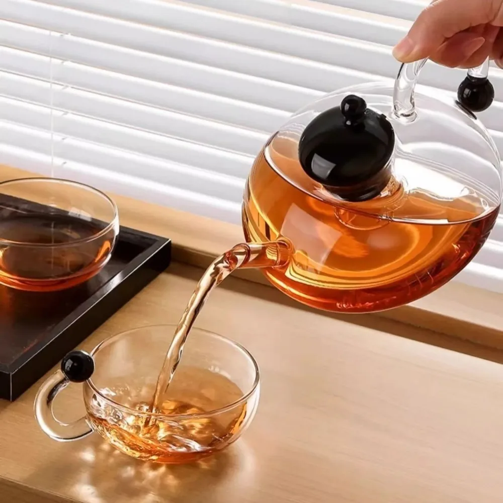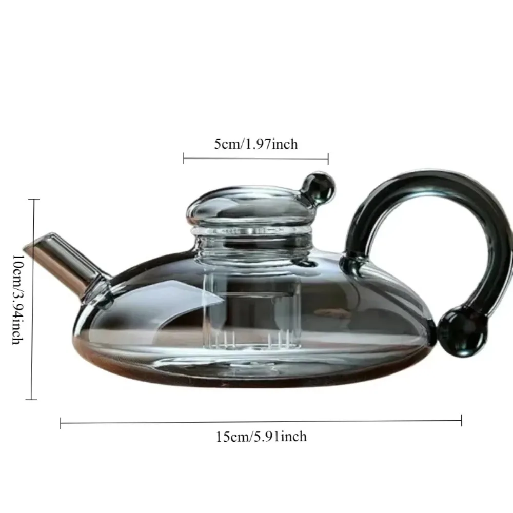 Heat-resistant clear glass teapot with infuser, perfect for brewing loose leaf tea. Elegant and practical for home or office, offering affordable luxury and healthy tea enjoyment.