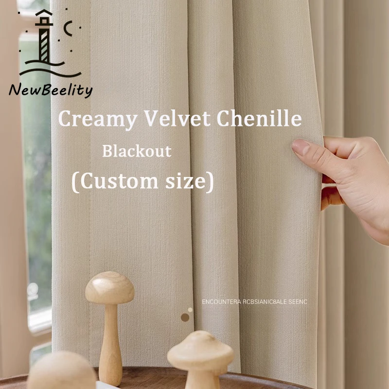 Add timeless elegance to your space with these cream velvet chenille blackout curtains. Crafted with thickened fabric, they offer excellent light blocking and insulation while maintaining a soft, luxurious texture. The solid cream color complements any décor style, from modern minimalism to classic elegance. Perfect for living rooms, bedrooms, or dining areas, these curtains can also be customized to fit your windows for a tailored and sophisticated look.