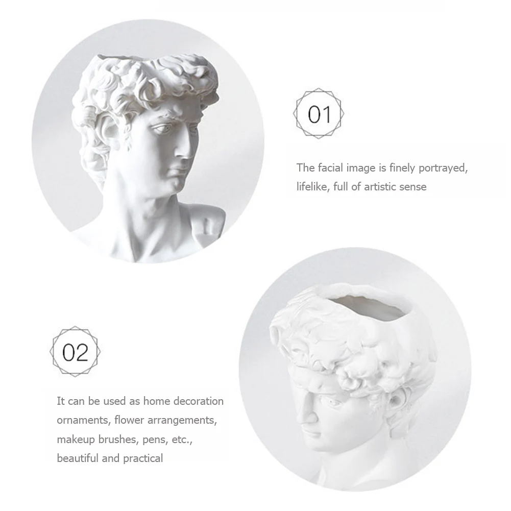 Add a touch of modern art to your space with this elegant David Head Vase Pen Holder. Inspired by classical sculpture, it serves as both a decorative ornament and a practical organizer for pens, brushes, or small plants. Perfect for desks, vanities, or shelves, this minimalist Nordic piece blends timeless beauty with everyday function.