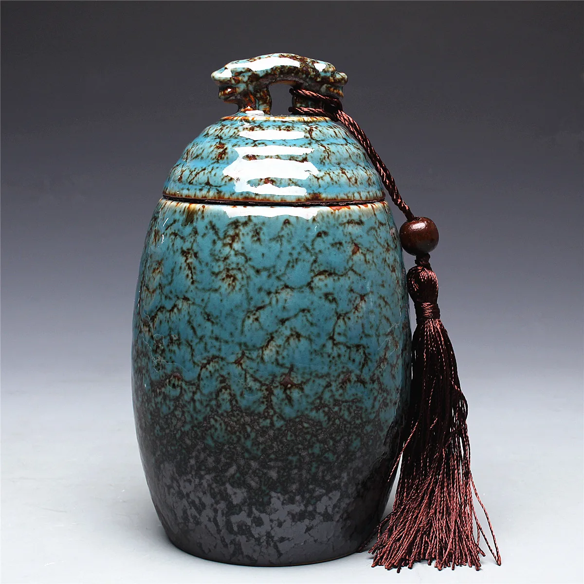 Store your favorite teas in style with this Double Leopard Head Tea Jar. Crafted from high-quality ceramic, it features two intricately designed leopard heads for a striking decorative touch. The airtight seal keeps tea leaves fresh, preserving aroma and flavor for longer. Perfect for storing puer, oolong, green tea, or even snacks and small food items. Its sturdy construction ensures durability for everyday use. The elegant design makes it a functional centerpiece for your kitchen or tea corner. Compact yet spacious, it fits neatly on shelves or countertops. Ideal as a gift for tea enthusiasts, collectors, or home decor lovers. Easy to clean and maintain, combining practicality with style. Add a touch of sophistication and wild charm to your tea storage with this unique ceramic jar.