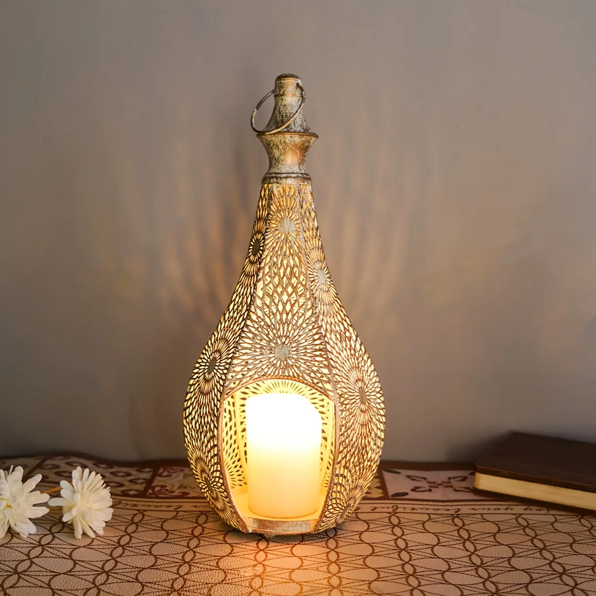 Add a festive touch to your home with this Elegant Metal Lantern Candle Holder. Perfect for Chinese New Year, Ramadan, or everyday decor, it serves as a stylish tabletop centerpiece. Its intricate design creates a warm and inviting ambiance, combining functionality with elegance for any celebration or home setting.