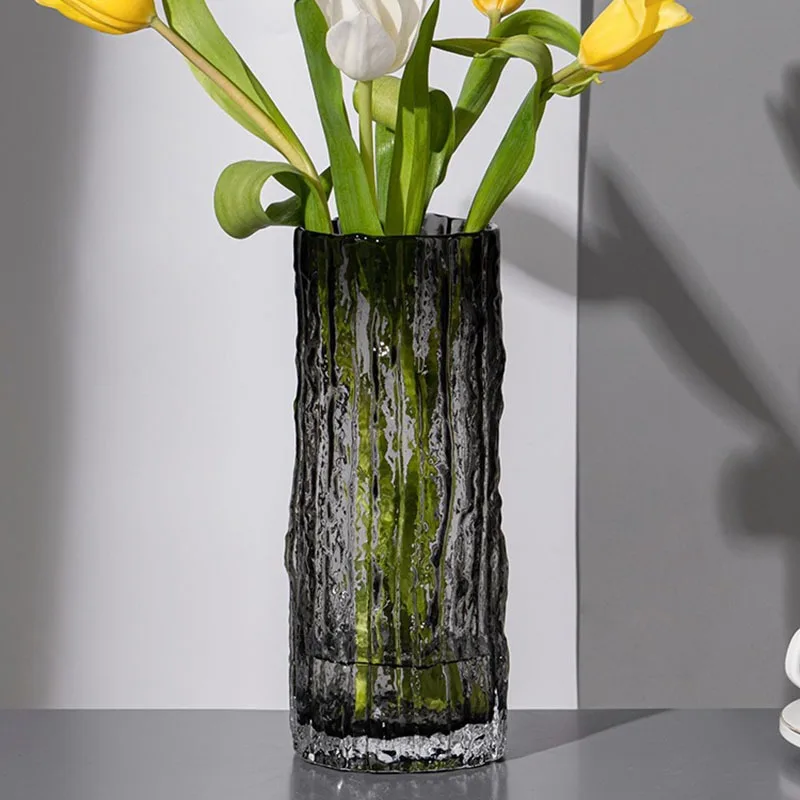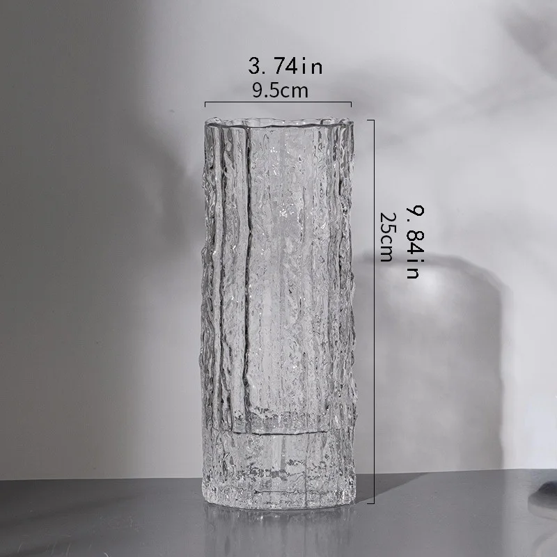 25cm transparent glass “Glacier” vase — perfect for flower arrangements and enhancing living room or dining table décor.