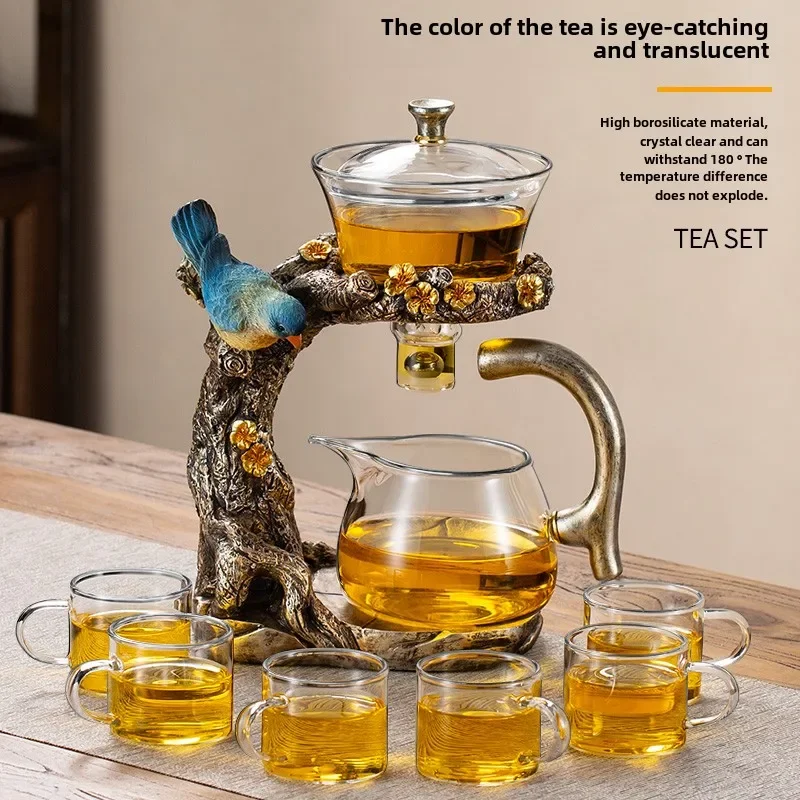 Elegant glass Kung Fu tea set with magnetic suction teapot and matching cups. Perfect for home tea ceremonies and tea enthusiasts.