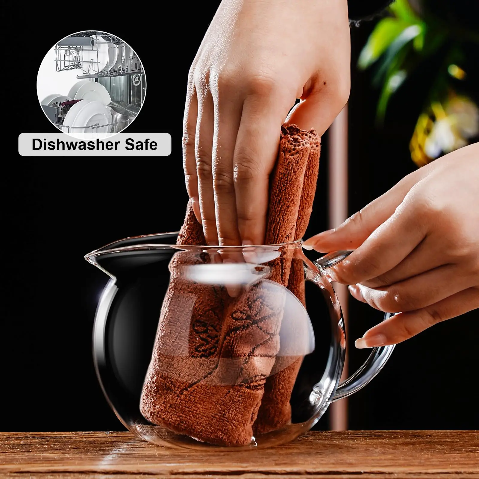 22oz/650ml borosilicate glass stovetop teapot with removable 18/8 stainless steel infuser. Clear design for easy brewing and stylish tea preparation.