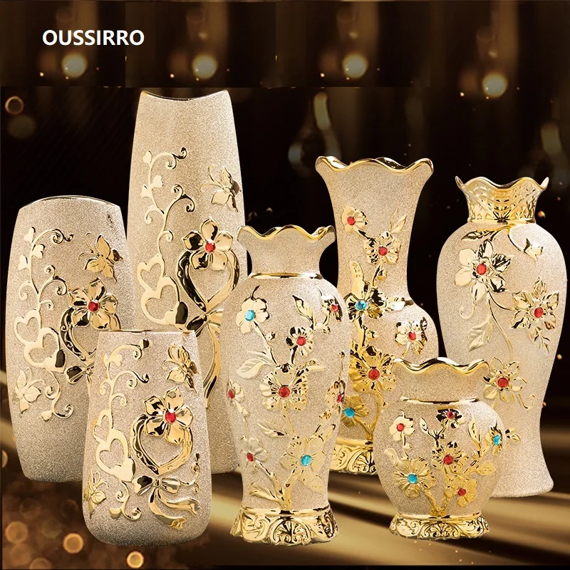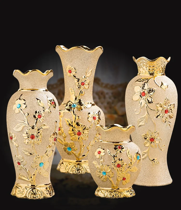 European-style gold ceramic vase — creative design, perfect for home décor, flowers, or wedding decorations.