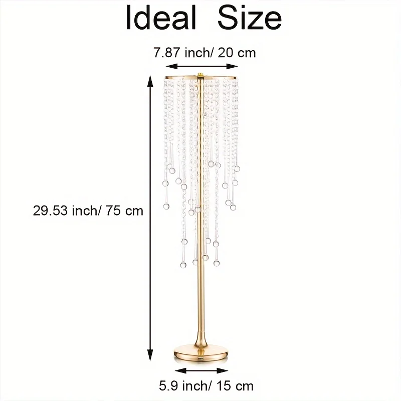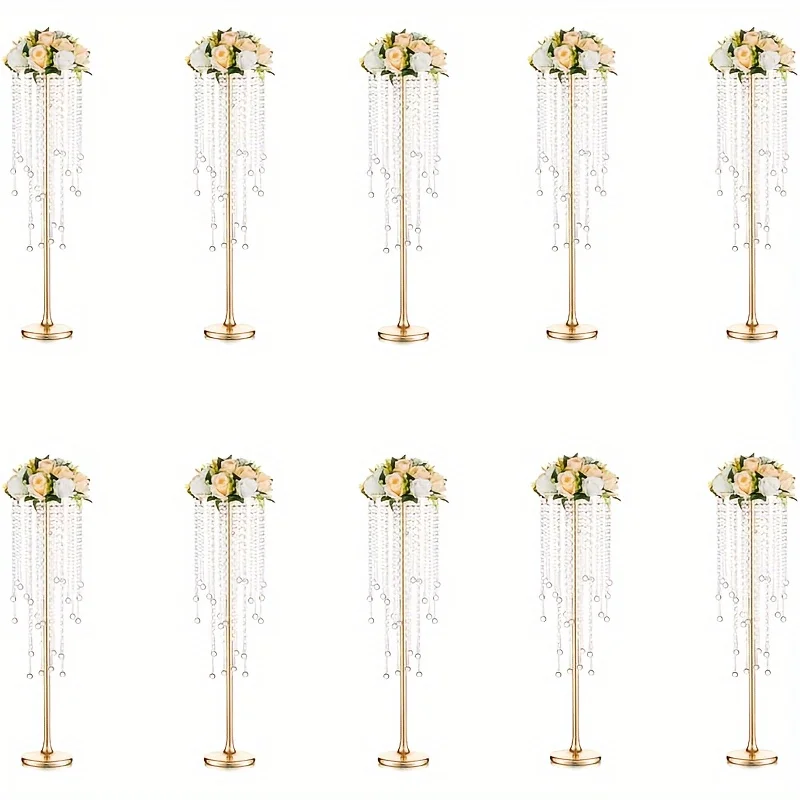 Set of two 29.6-inch gold metal vases with chandelier crystal accents — elegant and rust-proof, perfect for weddings, parties, events, or home décor.