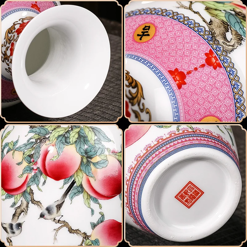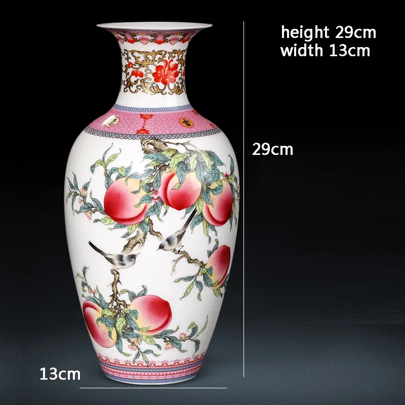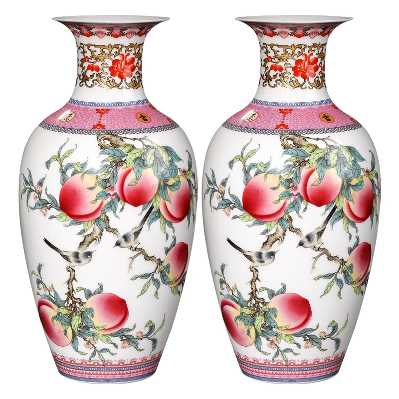 Jingdezhen ceramic vase with Famille Rose peach pattern — perfect as a Chinese-style antique décor for living rooms, wine cabinets, or home display.