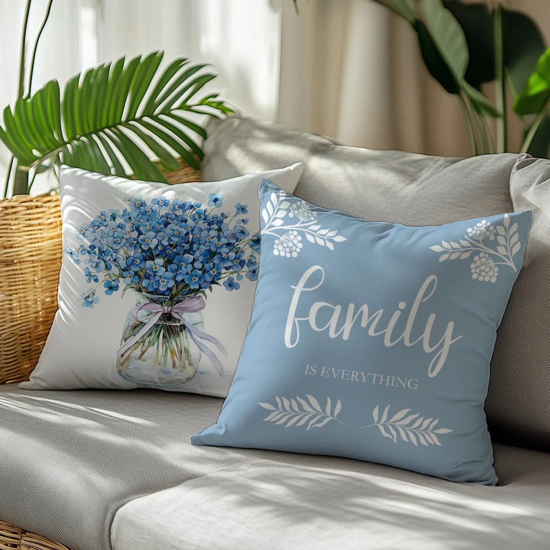 Bring a fresh and charming touch to your home with this 45cm Light Blue Flower Pillow Cover. Featuring soft blue and white flowers with warm words, it creates a serene and welcoming ambiance. Perfect for sofas, beds, chairs, or lounges, it adds both style and comfort to your space. Made from high-quality fabric, the pillow cover is soft, durable, and comfortable for everyday use. The 45cm square design fits most standard cushions perfectly. Its floral pattern and inspiring words enhance any modern, boho, or classic interior. The hidden zipper allows for easy insertion and removal of pillow inserts. Ideal for living rooms, bedrooms, or cozy reading nooks. Easy to clean and maintain, keeping your décor fresh and vibrant. Elevate your home with this artistic and decorative pillow cover that blends comfort and style.