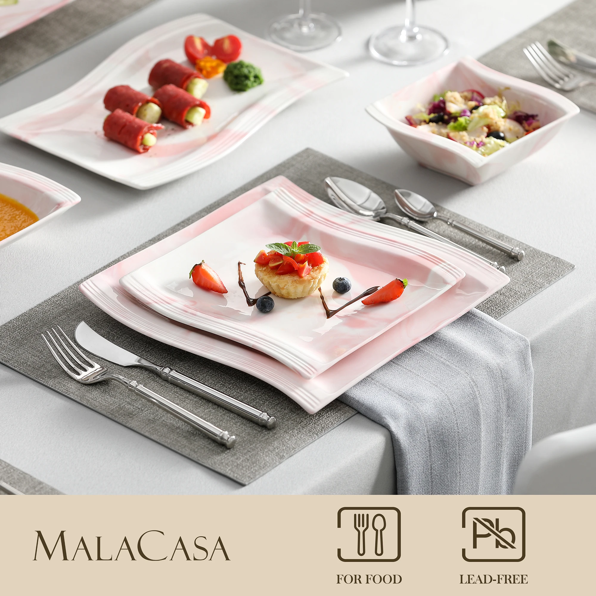 26-piece Nordic-European porcelain tableware set for 6, featuring bowls, dinner plates, dessert plates, and soup plates with a pink marble design. Elegant and stylish for everyday dining or special occasions.