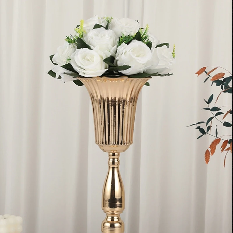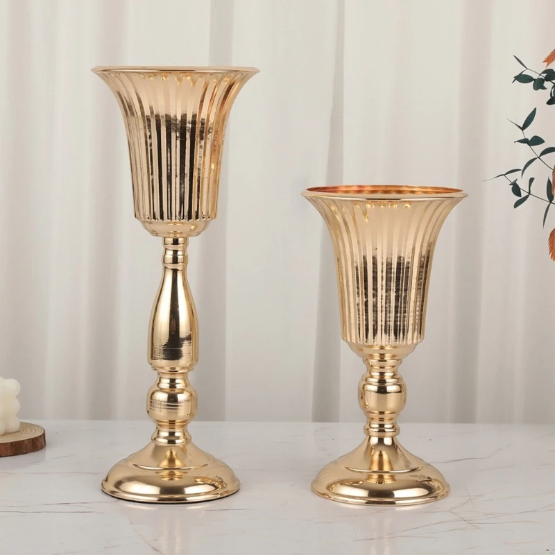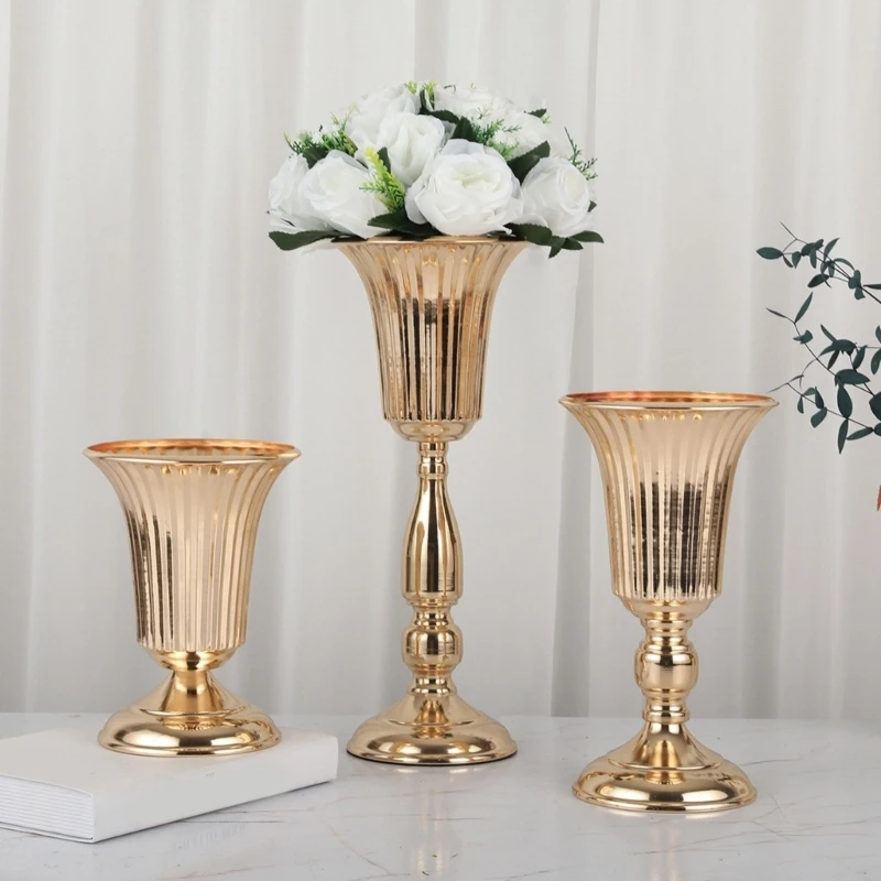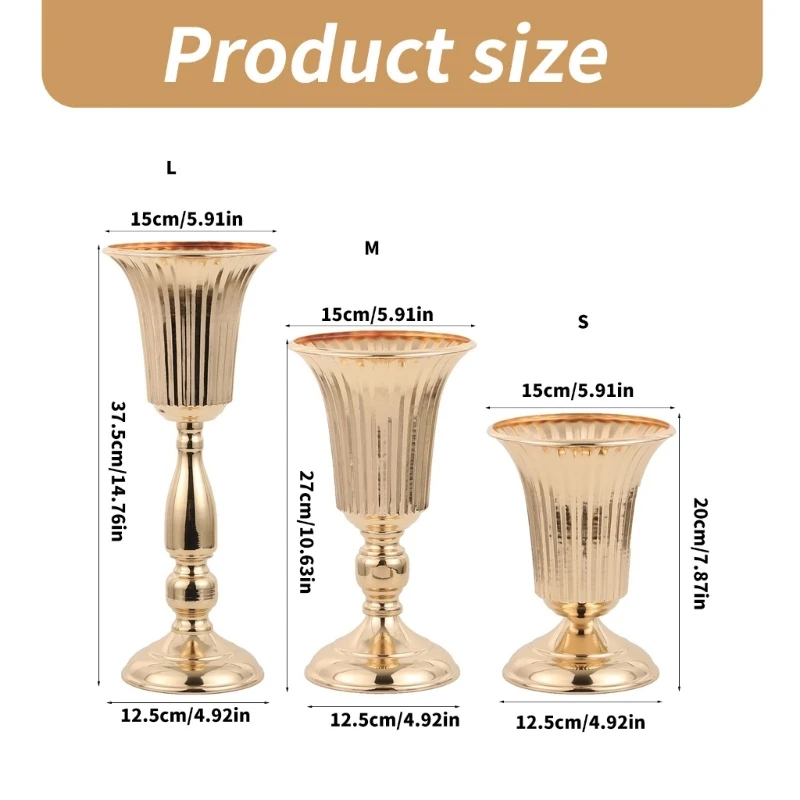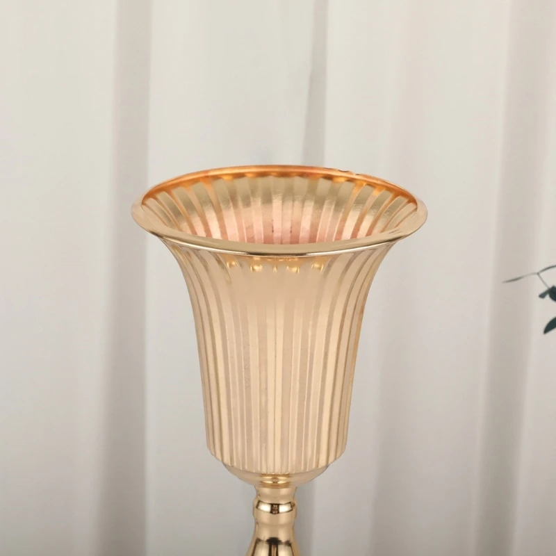 European-style metal trumpet vases in rose gold (20, 27, 37 cm) — perfect for weddings, parties, restaurants, and home table decorations.