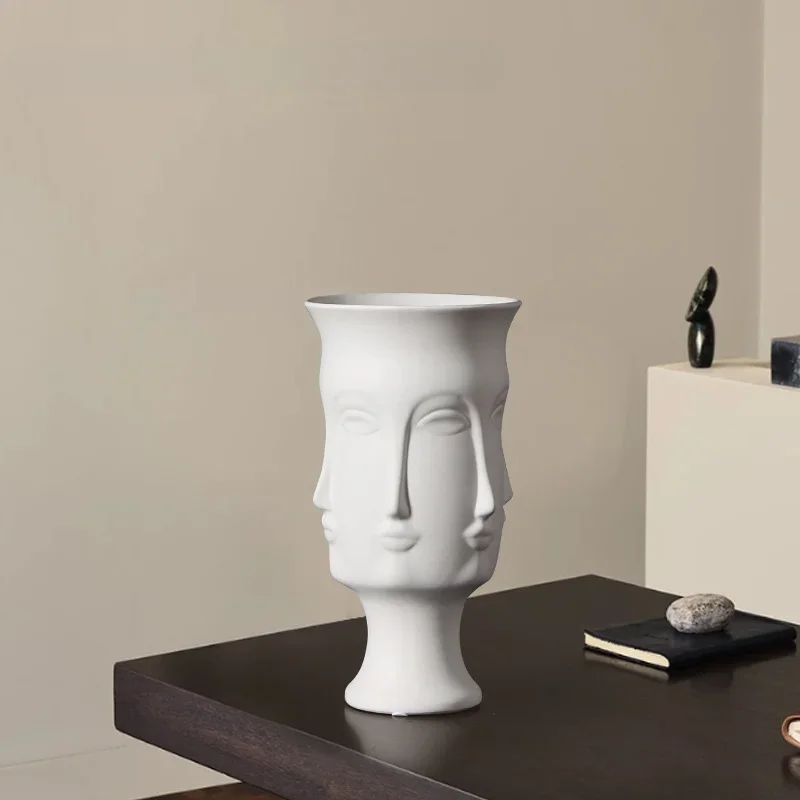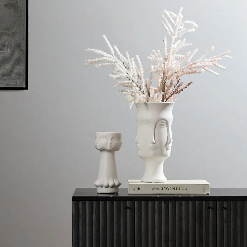 Nordic modern white ceramic vase with creative face design — a stylish and artistic piece perfect for home décor, flower arrangements, or as a unique gift.