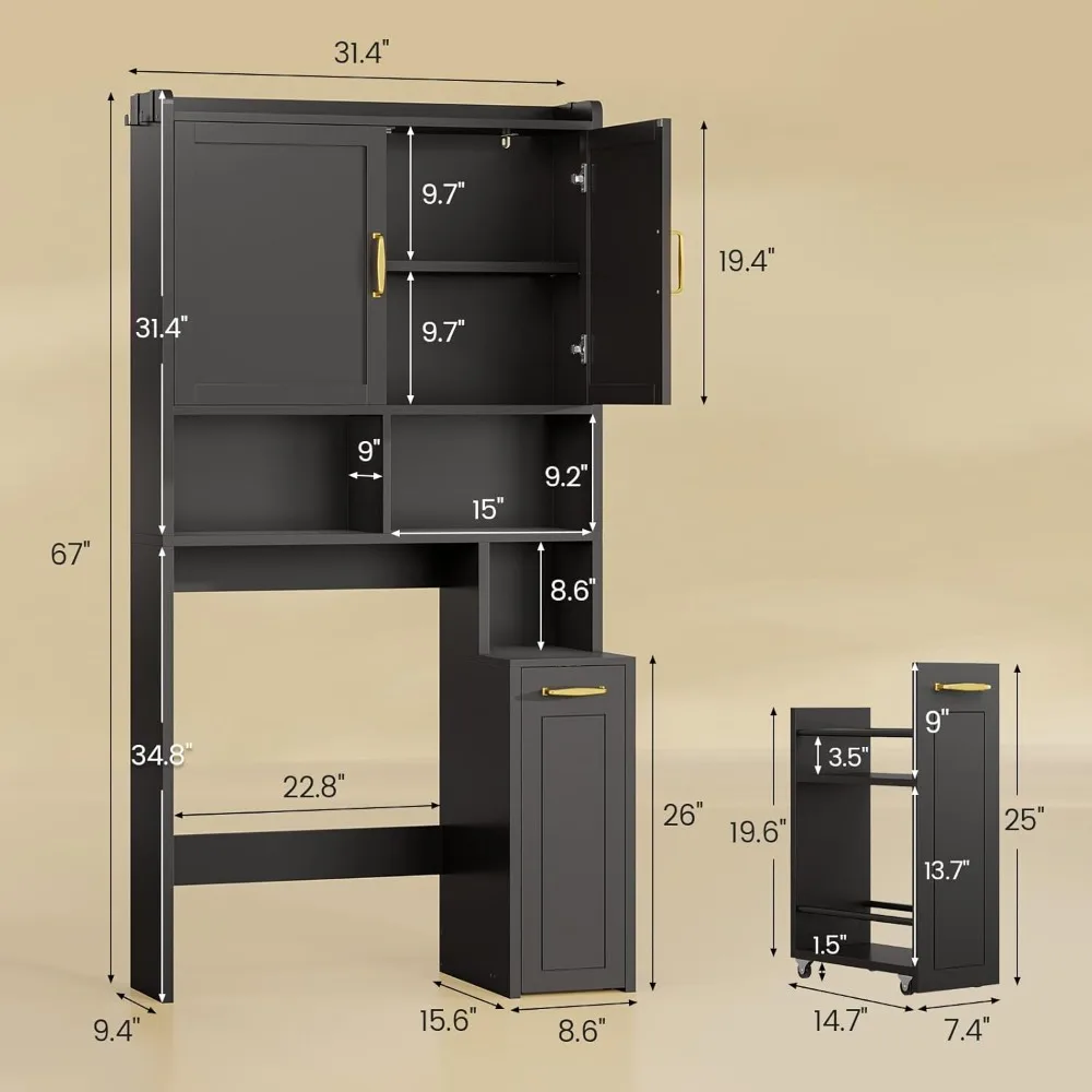 Maximize bathroom space with this over-the-toilet storage cabinet featuring a pulley-style door, adjustable shelf, and open shelf. Ideal for small bathrooms, it provides convenient storage for toiletries, towels, and essentials while keeping your space organized and stylish.