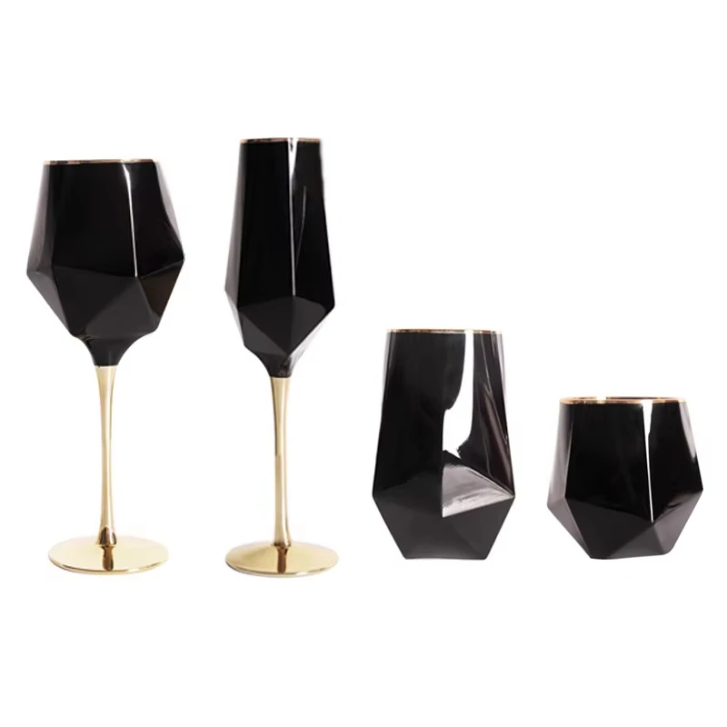 Pure Black Crystal Gold-Edged Wine & Beverage Glass