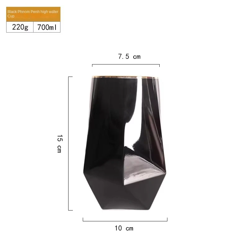 Make a statement with the Pure Black Crystal Gold-Edged Wine & Beverage Glass. Featuring a striking irregular design and luxurious gold rim, this versatile glass is perfect for wine, champagne, whiskey, or beer. Ideal for home bars, special occasions, and upscale gatherings, its bold black crystal and refined craftsmanship combine style with functionality, adding a touch of sophistication to every sip.