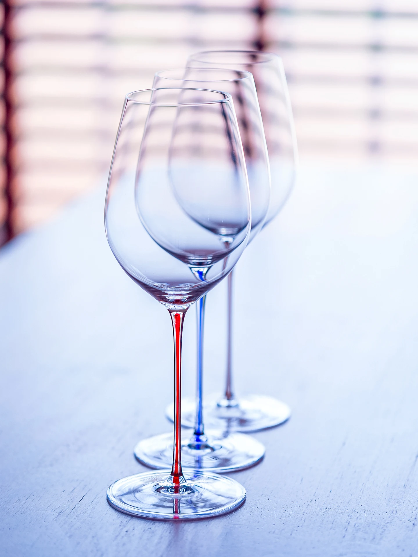 An elegant collection of red-stemmed crystal glasses available in multiple styles, including goblets, red wine, burgundy, and champagne shapes. Featuring a refined threaded design, this set adds a luxurious touch to any table setting, bar, or special occasion.