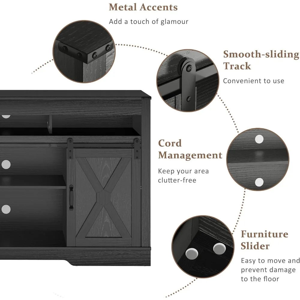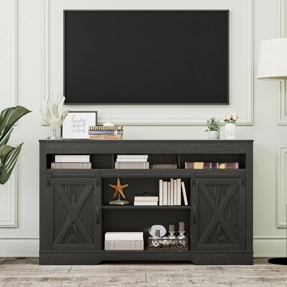 Crafted with a weathered wood finish, it showcases authentic barn-style sliding doors that glide smoothly across a sturdy metal rail, offering flexible access to adjustable shelves and concealed storage compartments. Perfect for organizing media equipment, gaming consoles, or décor accents, the spacious design keeps everything neatly tucked away while enhancing the cozy farmhouse aesthetic.