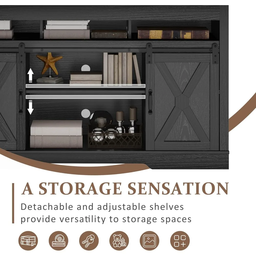Rustic 65+ Inch Farmhouse TV Stand – 34″ Tall with Sliding Barn Doors