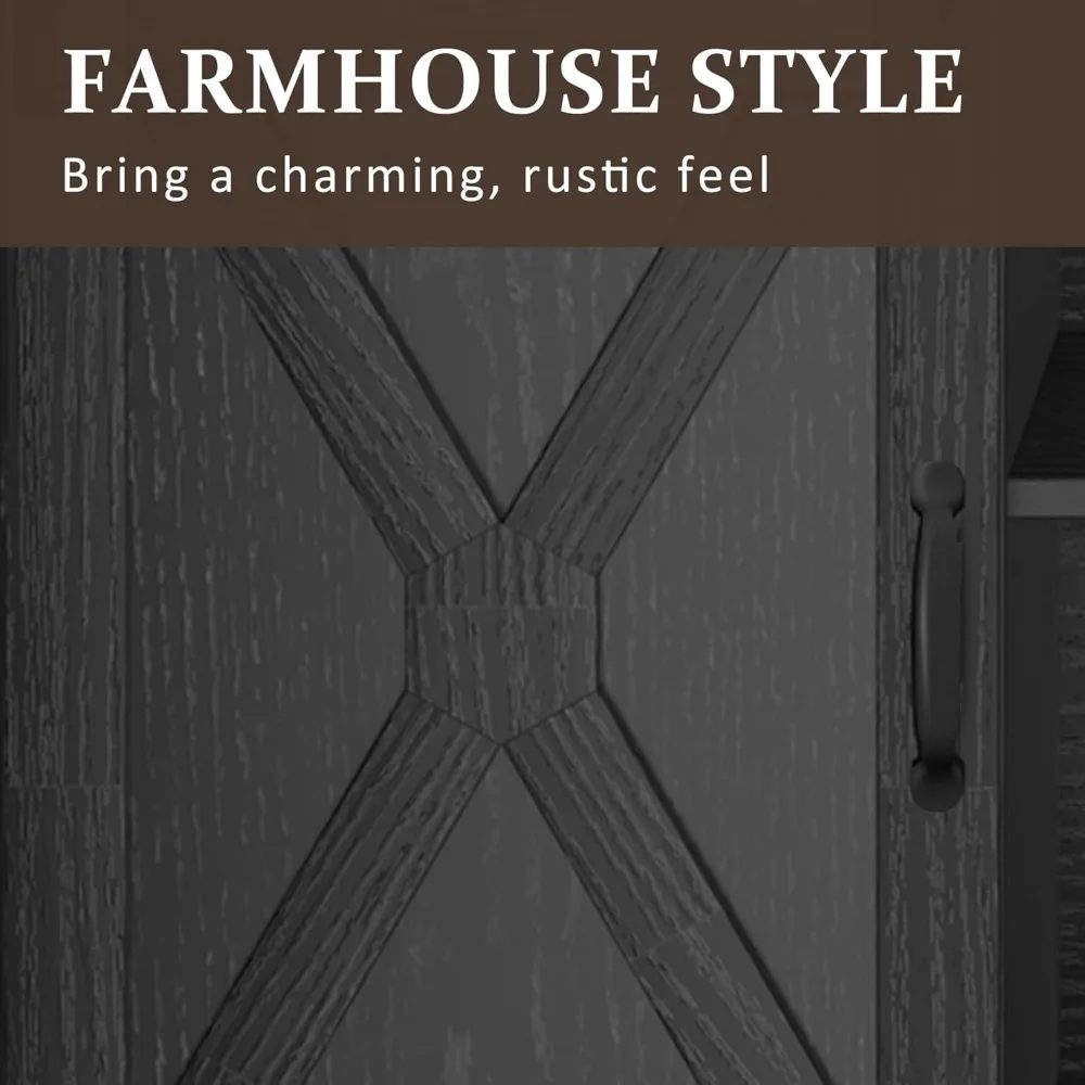 Bring timeless farmhouse charm into your home with this rustic media console, designed to fit TVs up to 65 inches and beyond. Standing at an impressive 34 inches tall, this high-profile entertainment center doubles as both a statement piece and a functional storage solution.
