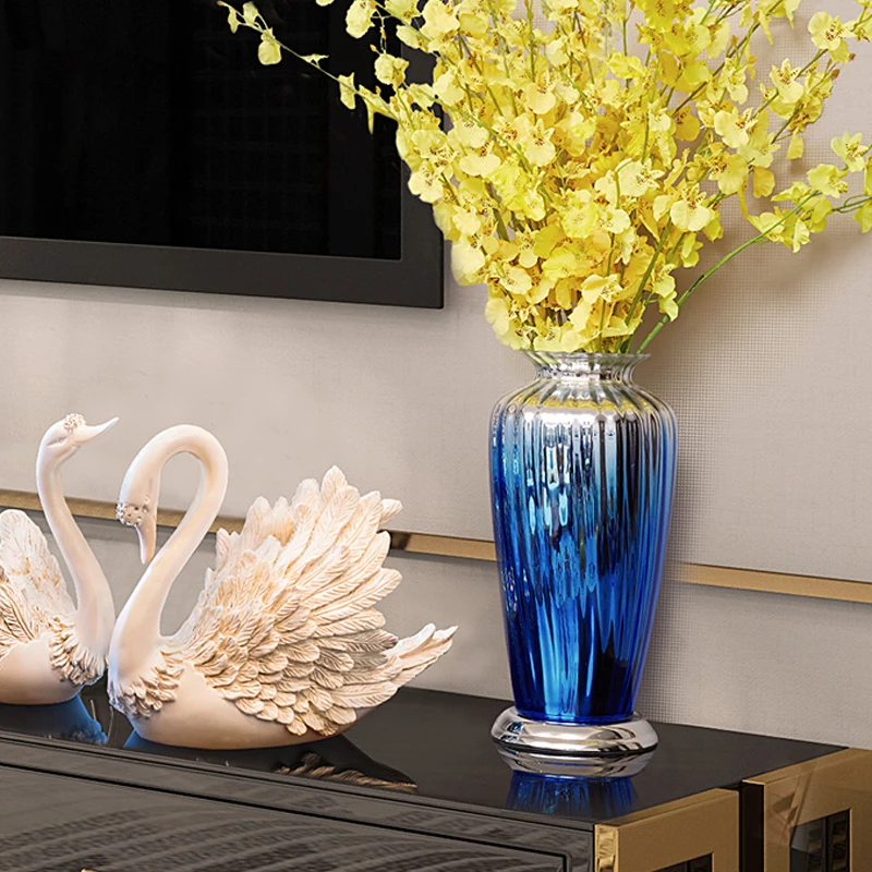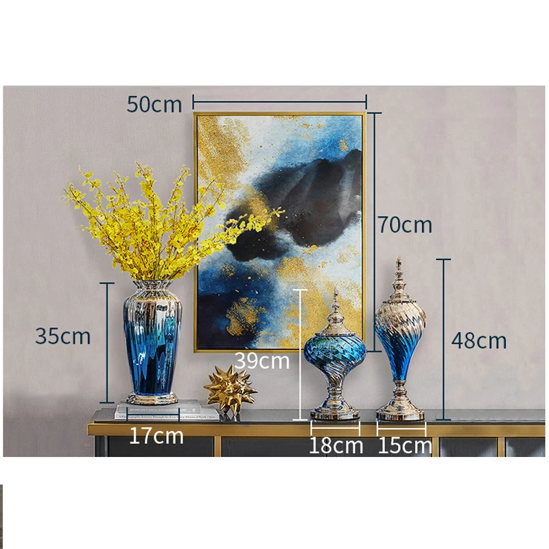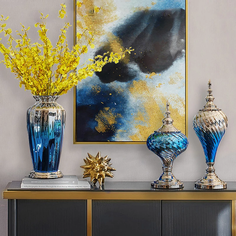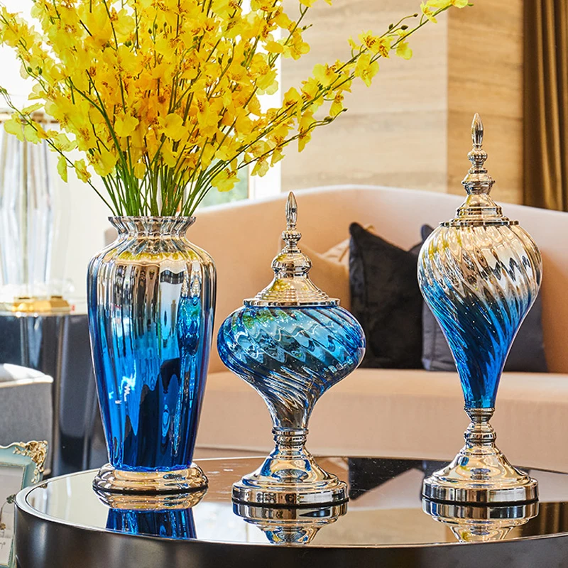 Luxury sapphire gradient crystal glass vase with lid — perfect for flowers, storage, and elegant living or dining room décor.