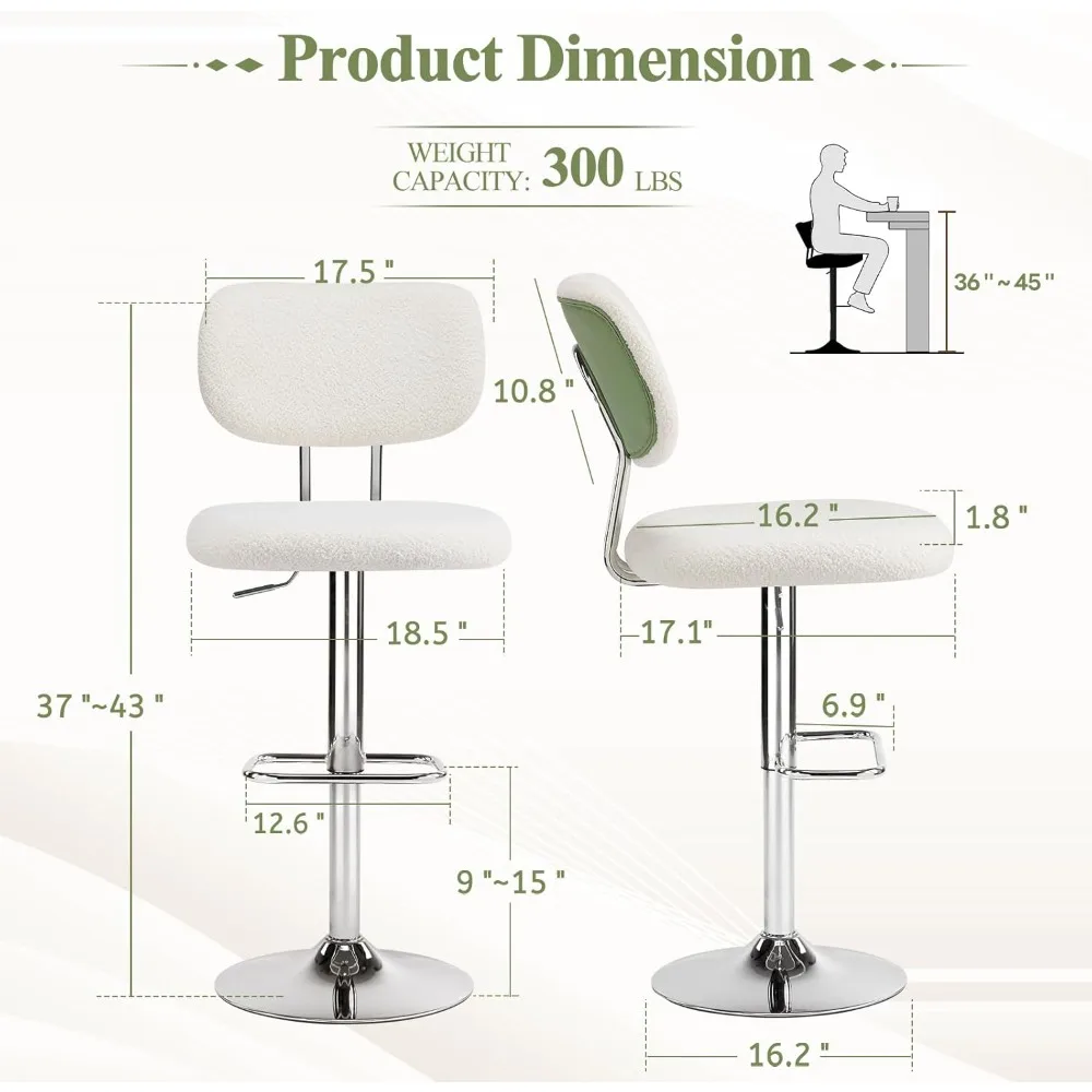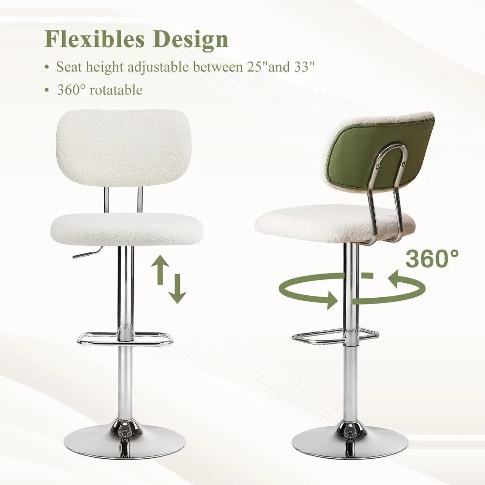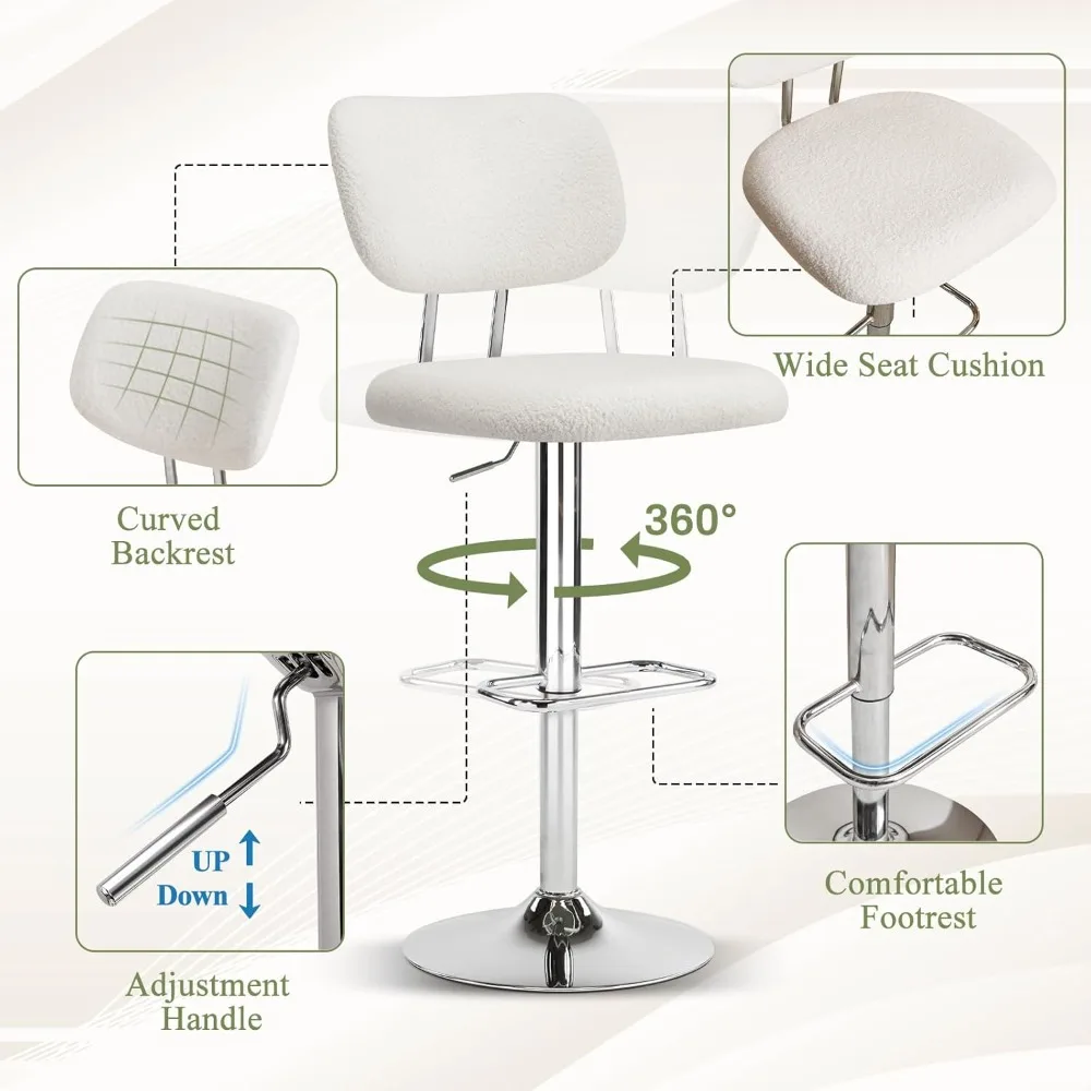 Set of 2 modern swivel bar stools upholstered in soft teddy velvet with a curved back for added comfort. Armless design and adjustable counter-height make them perfect for kitchens, bars, or islands. Stylish, cozy, and functional seating for any contemporary space.