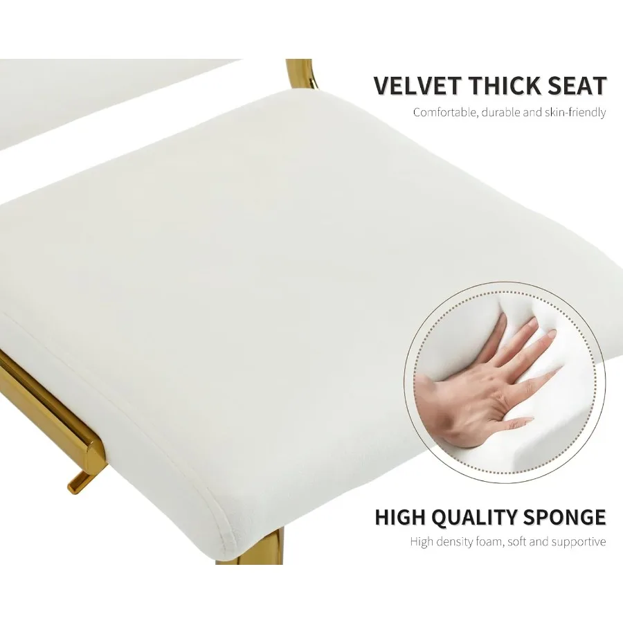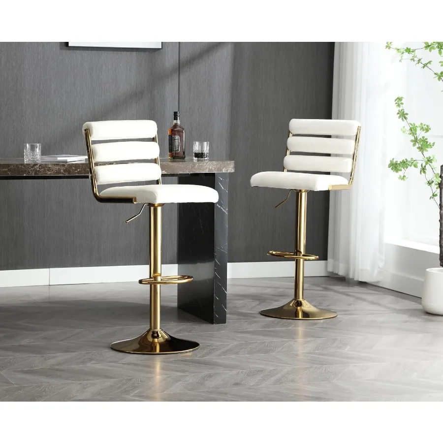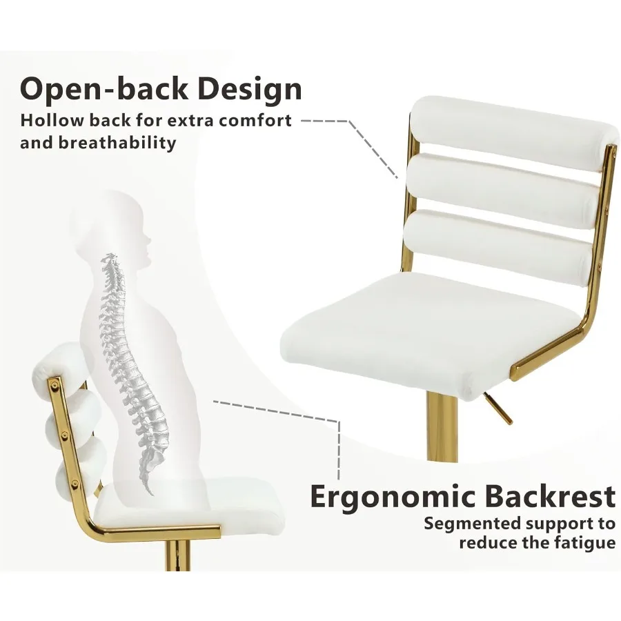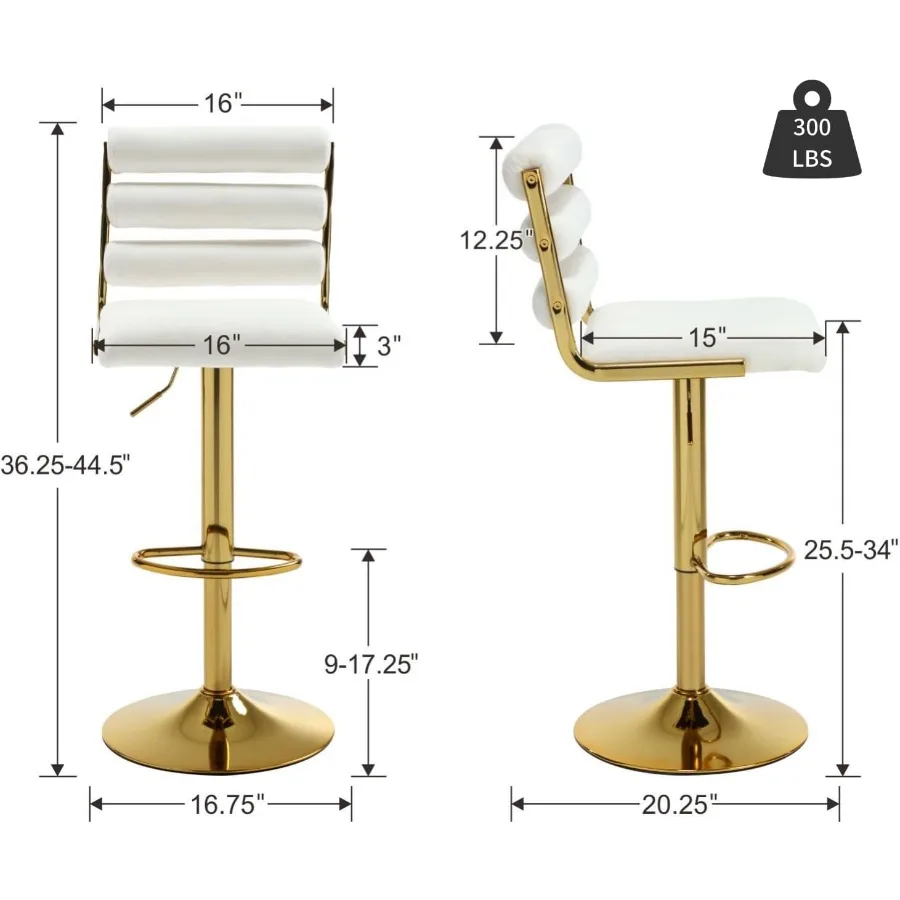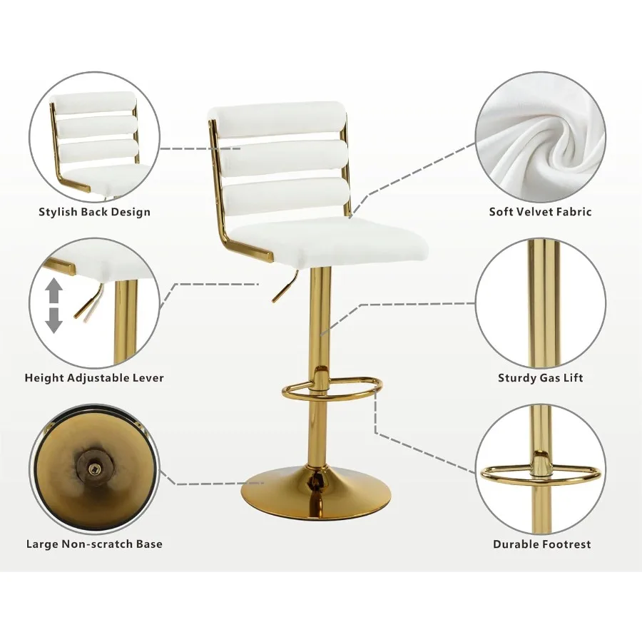 Set of 2 modern velvet bar stools with a sleek white seat and gold metal base. Adjustable height up to 25.5″ and 300 lbs weight capacity make them perfect for kitchen counters, islands, or home bars. Elegant and durable, they combine contemporary style with functional comfort.