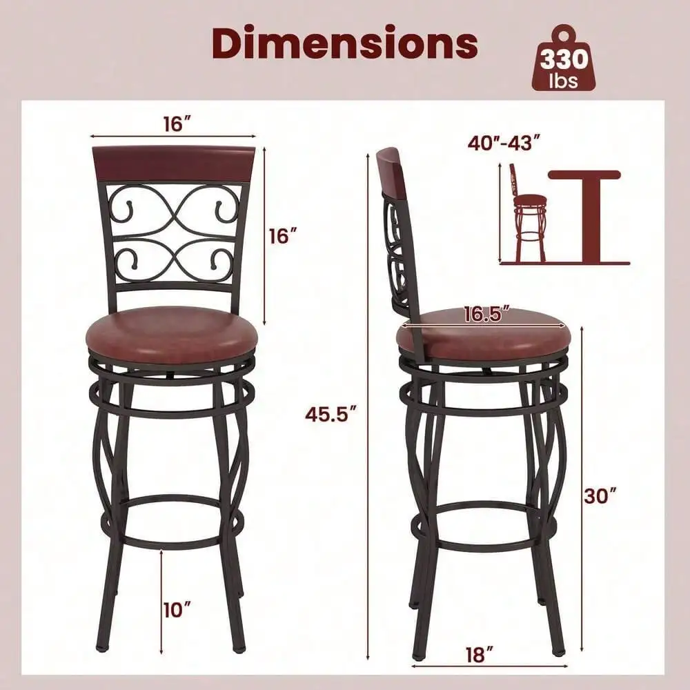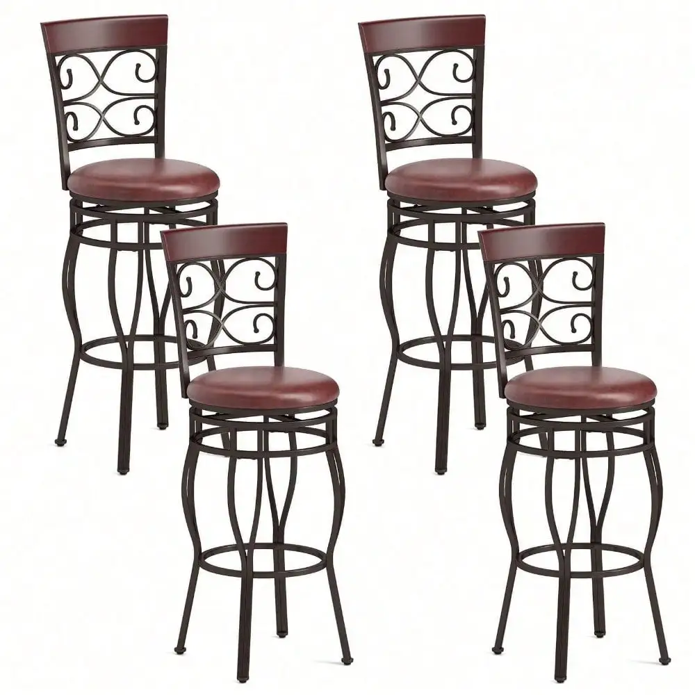 Bring vintage charm and comfort to your space with this Set of 4 Swivel Bar Stools. Each stool features a padded seat for all-day comfort and a 360° swivel for easy movement. Ideal for bistros, kitchens, home bars, or dining areas, these stools combine style and functionality to enhance any setting.