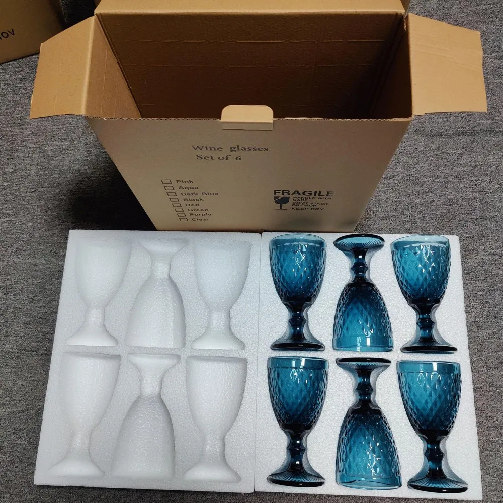 Add vibrant elegance to any celebration with this Set of 6 Colored Crystal Wine Goblets. Each 10oz glass features a vintage embossed design, perfect for weddings, parties, or home bars. Crafted from high-quality crystal, these decorative goblets combine durability with style, making every toast a memorable experience. Ideal for entertaining or gifting, they bring timeless charm and sophistication to any table setting.