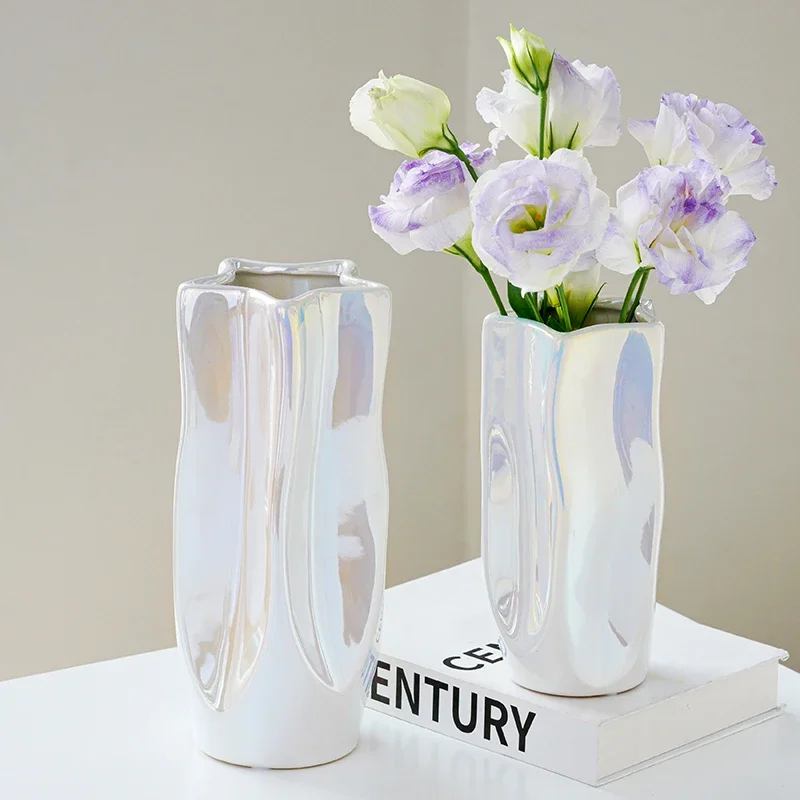 Luxury ceramic vase with irregular shape and silver electroplated finish — perfect for hydroponic planting, floral arrangements, and artistic home décor.