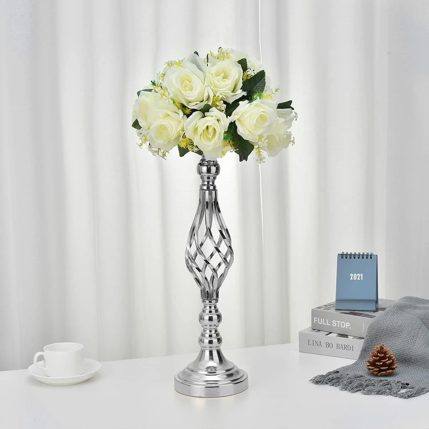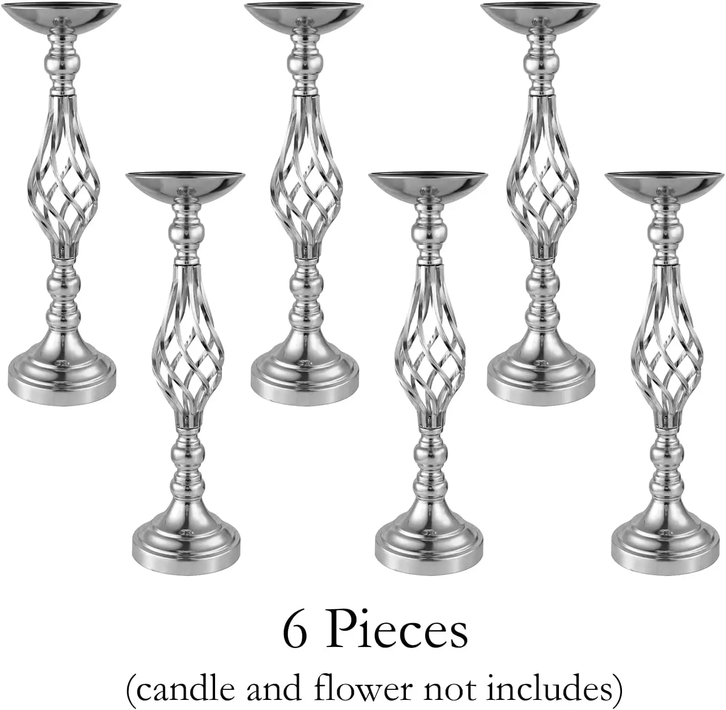Set of 6 silver metal vases, 18.7 inches tall — perfect for wedding table centerpieces, parties, birthdays, and floral displays.