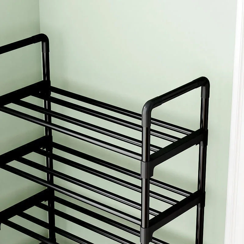 Keep your shoes tidy with this simple black plastic shoe rack. Lightweight yet durable, it saves space while organizing footwear in the living room, hallway, or closet. A practical and compact storage solution for every home.