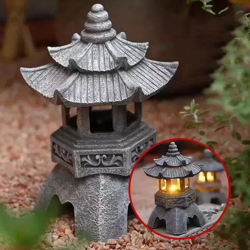 Enhance your outdoor space with this Solar-Powered Pagoda Statue. Perfect for Japanese or Zen gardens, it features flickering LED light powered by sunlight, creating a serene and enchanting ambiance. Ideal for patios, gardens, or pathways, blending traditional elegance with modern convenience.