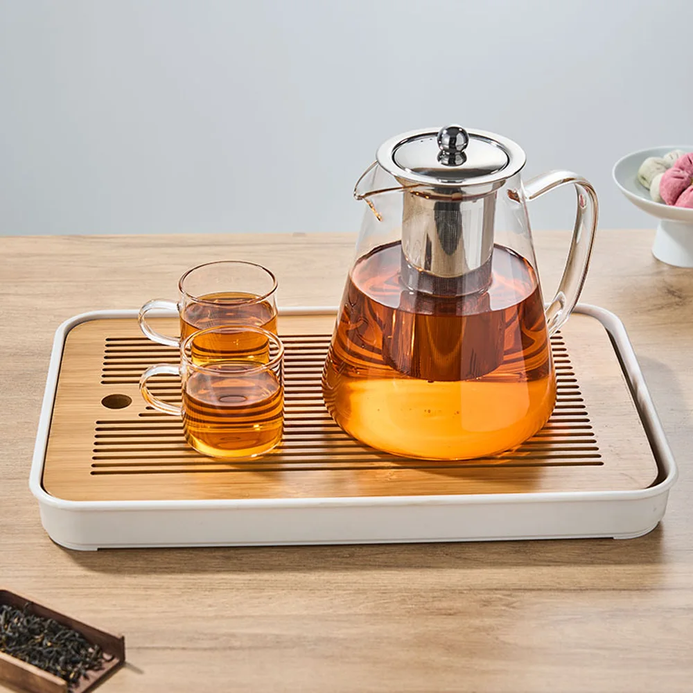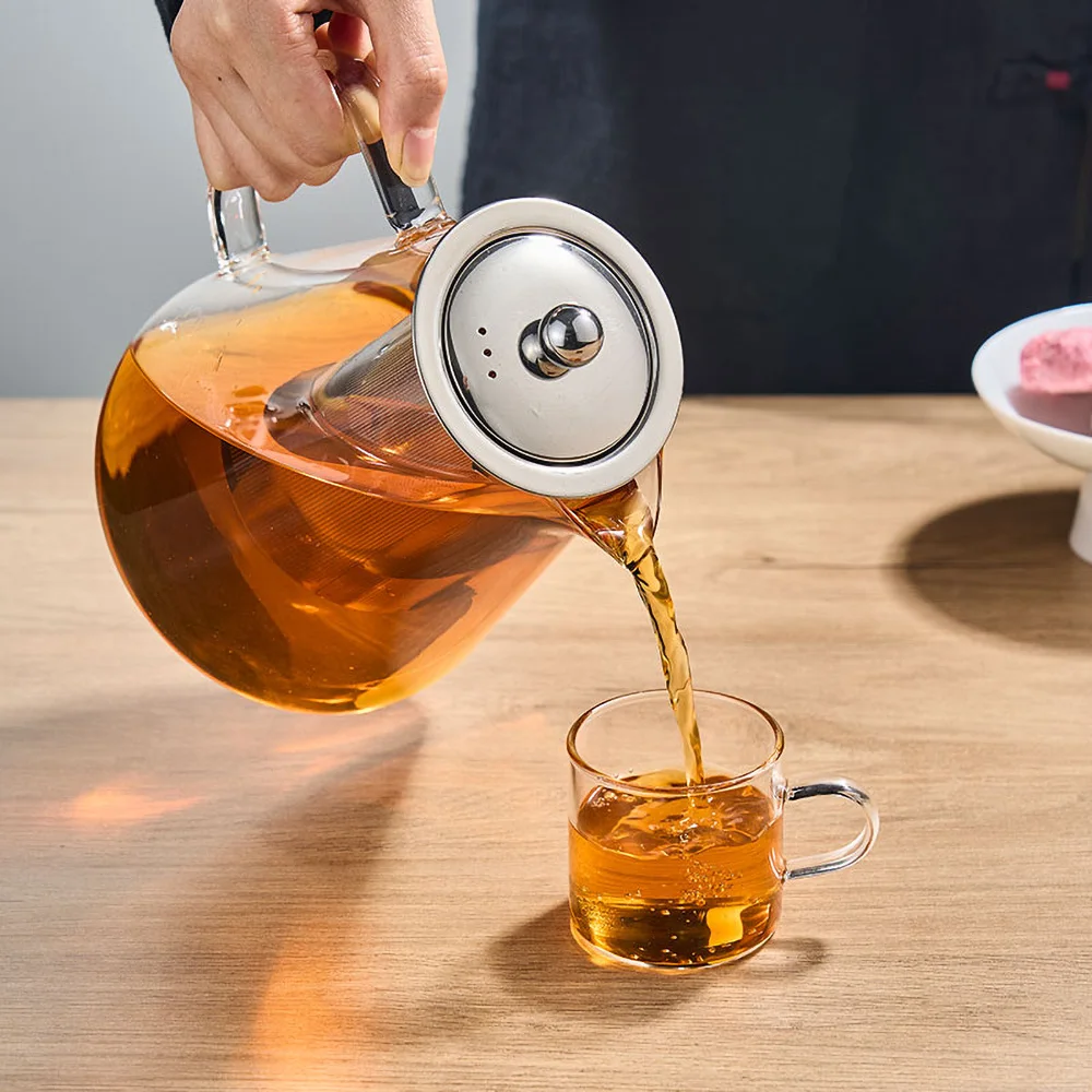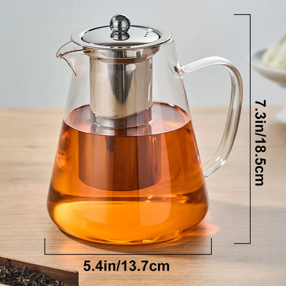 43oz thick glass teapot with stainless steel filter, ideal for home tea brewing. Durable and practical for everyday kitchen use.