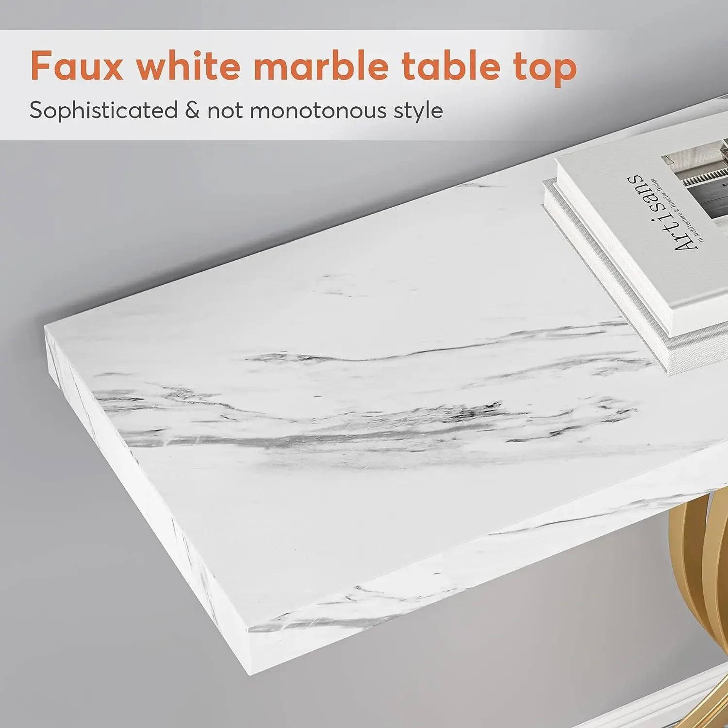 Elevate your space with the Tribesigns 39″ Gold & Marble Console Table. Featuring a sleek faux marble top and geometric gold metal legs, this narrow modern design is perfect for entryways, hallways, or behind sofas. Sturdy yet elegant, it adds a touch of luxury and functionality to any room.