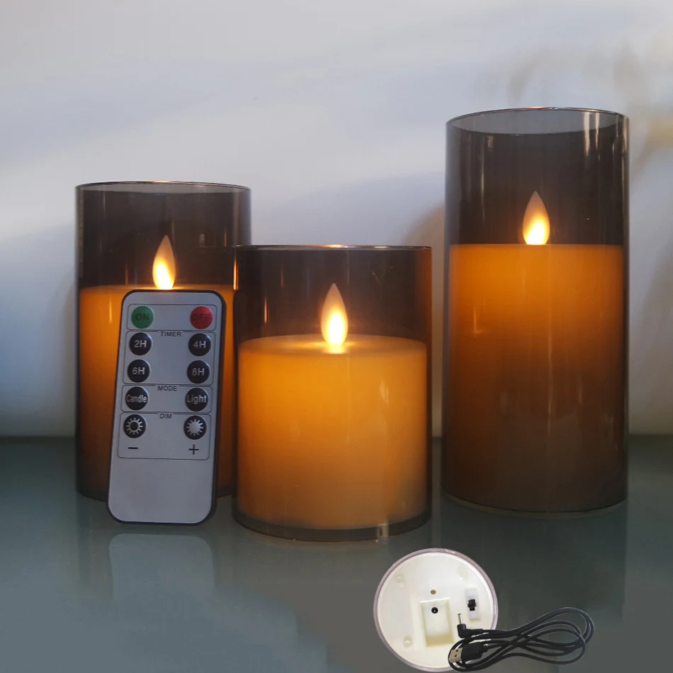 This 3-piece set of USB rechargeable LED pillar candles offers safe and elegant illumination. Flameless design ensures worry-free use around children and pets. Each candle includes a remote control for convenient operation from a distance. Timer function allows 2, 4, or 6-hour settings for automatic shut-off. USB rechargeable feature eliminates the need for disposable batteries and ensures long-lasting use. Perfect for decorating tables, mantels, or shelves for everyday ambiance or special occasions. The realistic flickering flame creates a cozy and festive atmosphere. Ideal for Christmas, weddings, parties, or home décor. Lightweight and portable, they can be moved and arranged easily. Enhance your space with this versatile LED candle set, combining style, safety, and convenience.