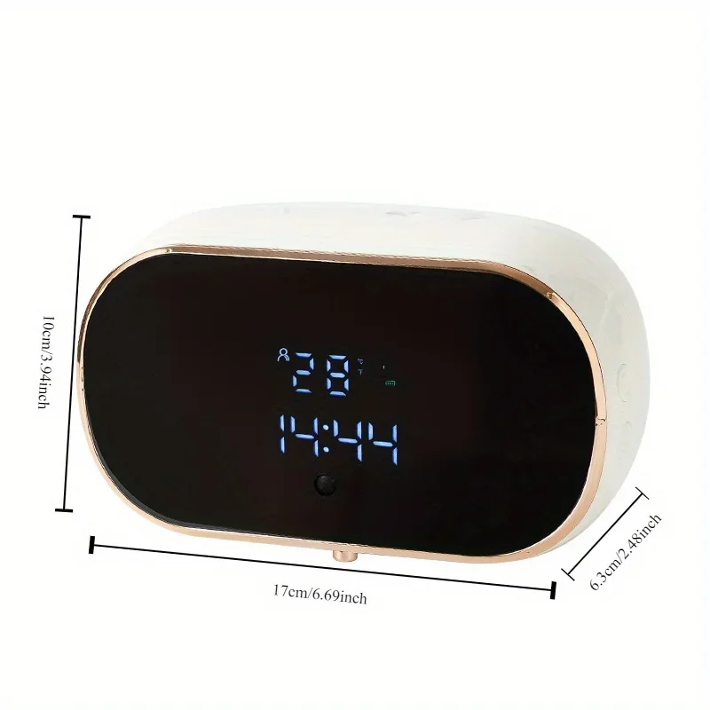 Wall-mounted intelligent soap dispenser with non-contact infrared sensor. Dispenses foaming soap automatically, ideal for hygienic handwashing in kitchens and bathrooms.